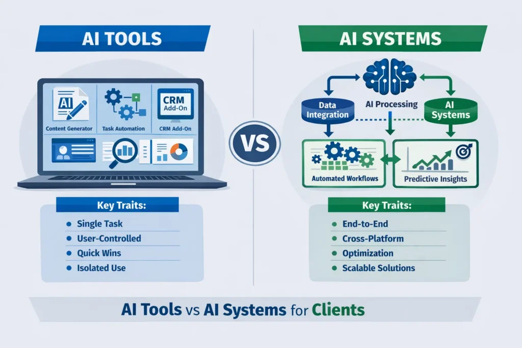 AI Tools vs AI Systems for Clients is not a technical nuance.